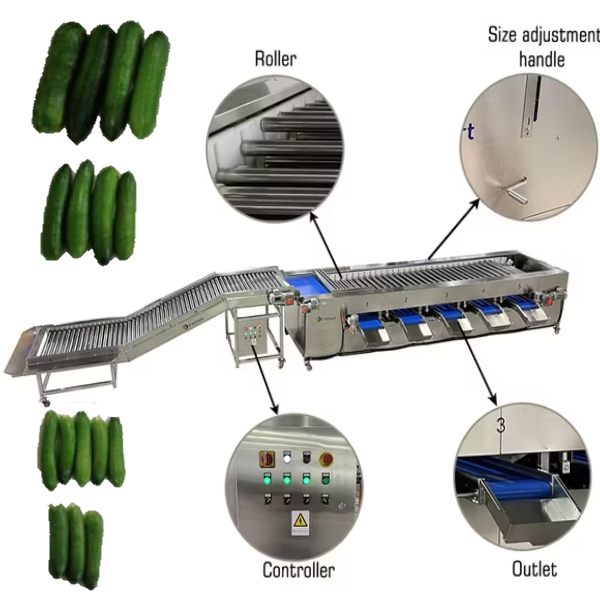 دستگاه سورتینگ خیار یک تجهیز مکانیکی یا الکترونیکی است که خیارها را بر اساس طول، قطر یا وزن به چند دسته مختلف تقسیم می کند.